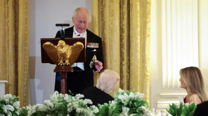 Ka pasur edhe më shumë humor nga Mbreti Karli III gjatë vizitës së tij në Uashington, ku në fjalimin e mbajtur në darkën shtetërore të organizuar nga Donald Trump, ai e ngacmoi Presidentin amerikan me një batutë mbi të kaluarën koloniale të SHBA-së.