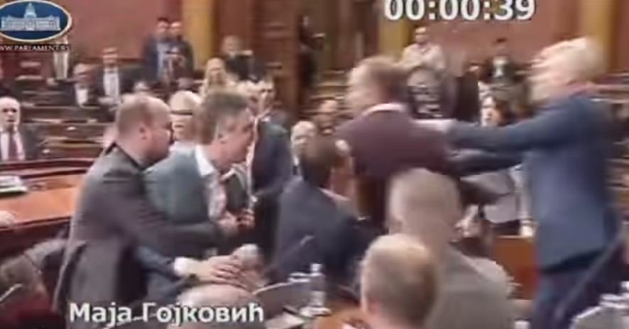 Disa deputetë janë përleshur fizikisht në parlamentin e Serbisë, kur dy prej tyre hynë në sallën e seancës plenare duke mbajtur pankarta në duar mbi të cilat shkruhej: “Milo, hajdut,... Më shumë