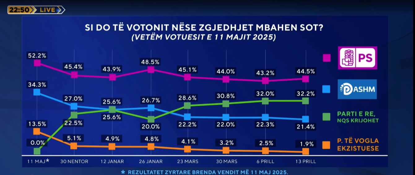 Ndërkohë, sa i përket gjendjes aktuale politike, sipas sondazhit në ABC News dalja në terren e kryeministrit Edi Rama në turin Punët e Shqipërisë e ka rritur Partinë Socialiste gjatë... Më shumë