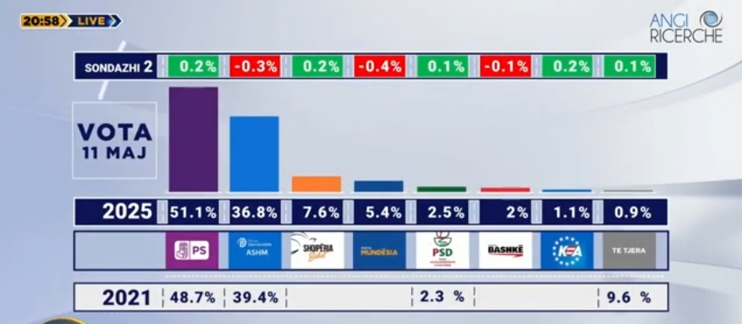 ABC News dhe Angi Ricerche zbulojnë sot të dhënat e sondazhit të dytë për zgjedhjet e 11 majit Në këtë sondazh janë kontaktuar, përmes formave të ndryshem rreth 8400 vetë, nga të... Më shumë