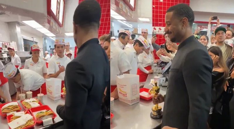 Më pas,  Michael B. Jordan, siç shihet në një video të publikuar në rrjete sociale, e gjeti veten në një rrjet ushqimi të shpejtë In-N-Out në Hollyëood, duke mbajtur statujën e tij të artë, ndërsa shijonte hamburgerin e tij.