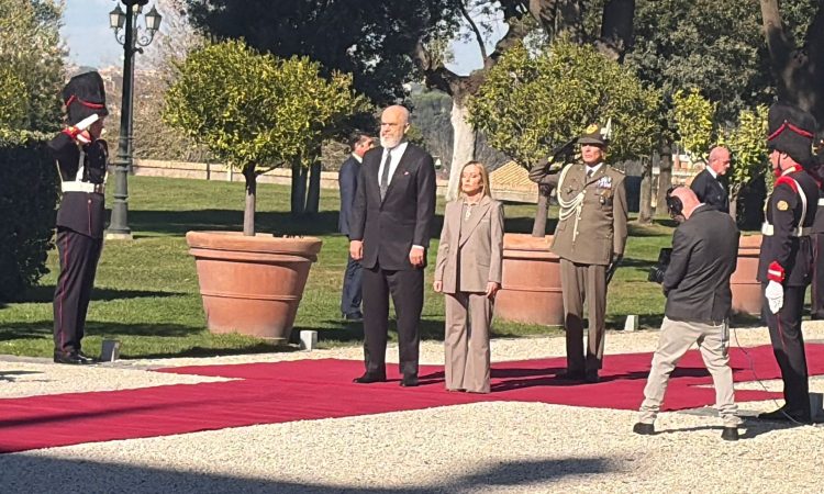 ROMË– Kryeministri Edi Rama në Romë pritet me ceremoni zyrtare nga homologia italiane, Giorgia Meloni.