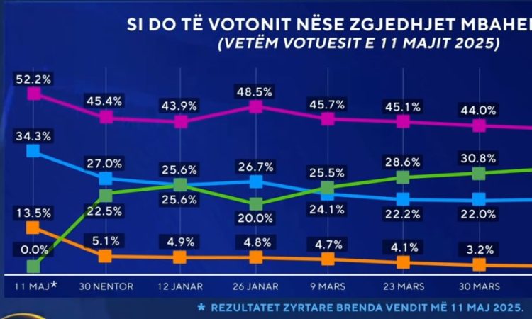 SHQIPËRI– Sa i përket politikës brenda në Shqipëri, Partia Socialiste për herë të parë ka kapur nivelin më të ulët të mbështetjes prej zgjedhjeve të 11 majit. 43.2%.