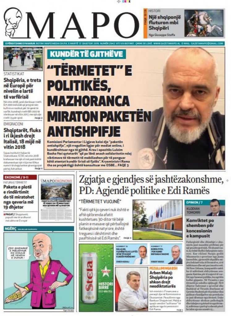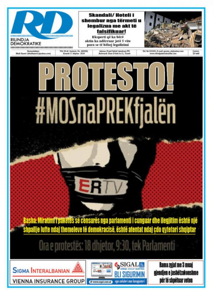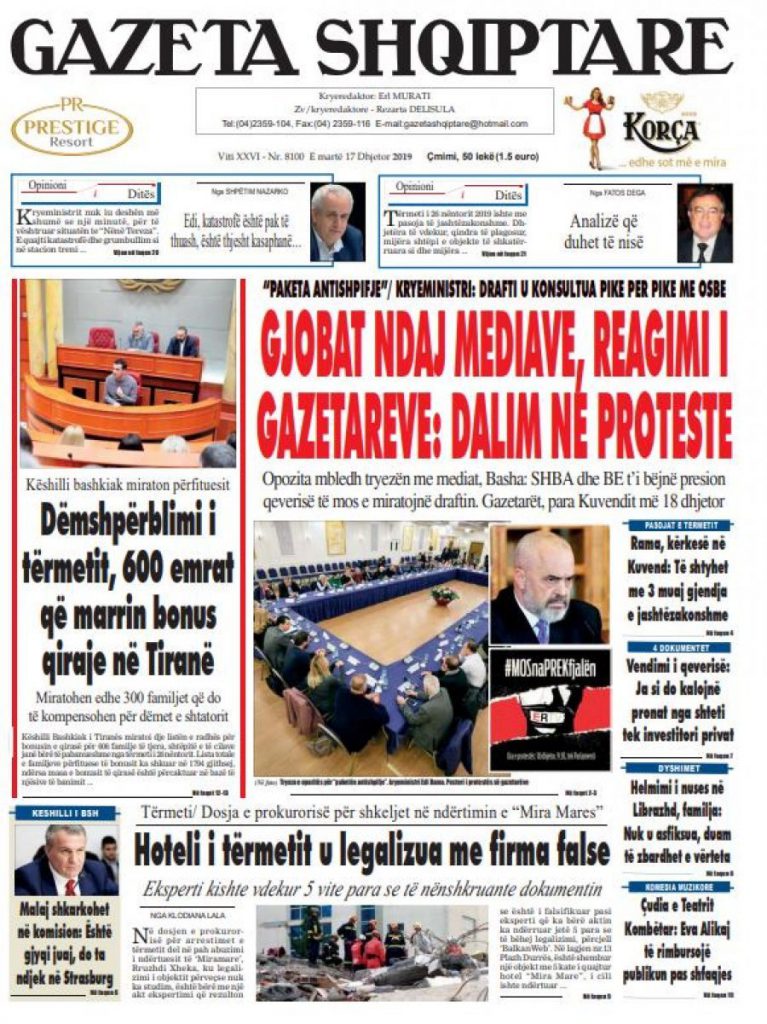Titujt kryesorë të gazetave. E martë 17 dhjetor 2019